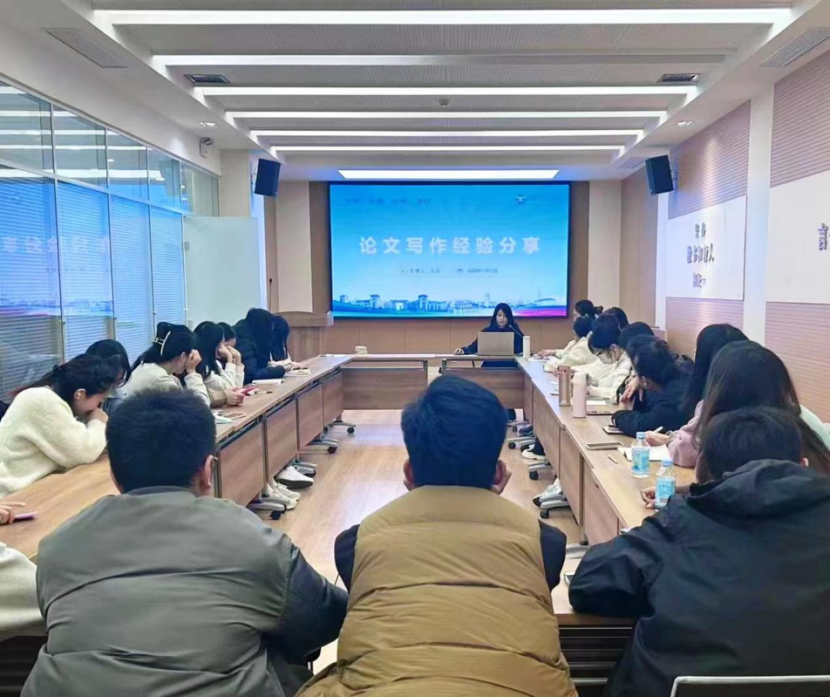王红就“论文写作经验”作了交流。她强调了论文写作和发表对于研究生的重要意义,鼓励师弟师妹们早做规划。她以自身写作时遇到的实际问题为例,从论文选题、如何阅读文献和使用文献等方面作了分享,建议师弟师妹们多向老师交流请教。