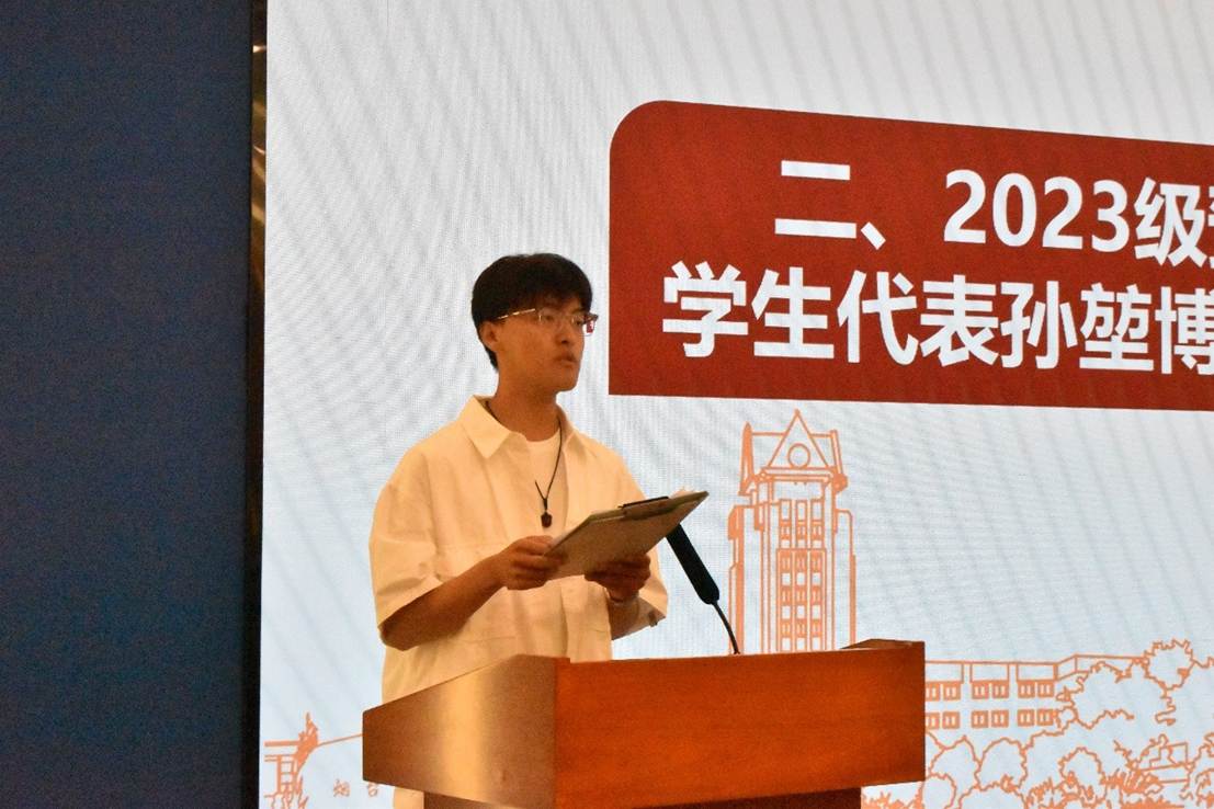 2023级预科班员工代表孙堃博分享了预科一年的经验和收获,他叮嘱学弟学妹们刻苦学习,珍惜时间,努力拼搏,找到自己的兴趣所在,选择最适合自己的专业。