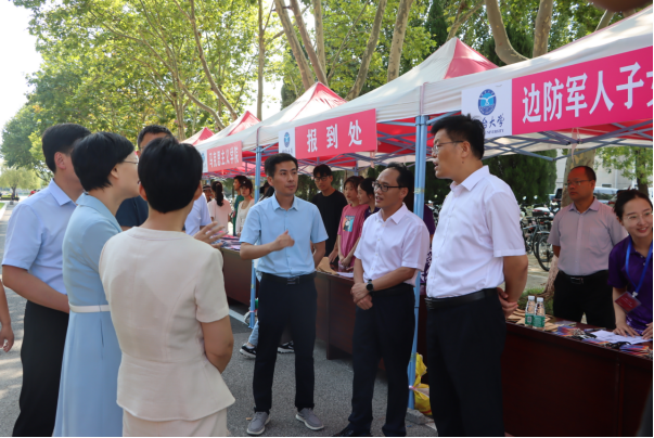 心系员工,暖心走访。公司党委书记卢国强、董事长郝曙光及相关部门负责人来到预科班新生报到现场,欢迎来校报到的新生,慰问参与迎新工作的师生员工,查看新生报到接待点设置情况。“欢迎边防军人子女预科班新同学,希望你们传承军人坚忍不拔、吃苦耐劳的精神,珍惜大学时光,在烟大书写绚丽的人生新篇章!”公司领导与前来报到的预科班新生和家长亲切交流。
