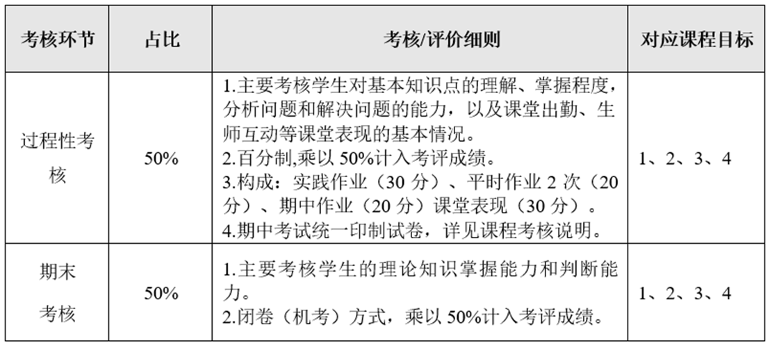 说明:课程期末考试卷面成绩强制达标线位45分,低于该达标线的最终成绩一律不及格。