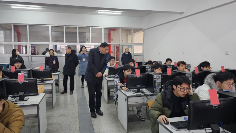 12月28日上午,2023-2024学年第一学期全校思想政治理论课期末考核首场考试在主校区计算中心正式开考。公司党委书记张殿臣、副董事长宋中民、教务处处长李庆忠到考场巡考并现场指导。
