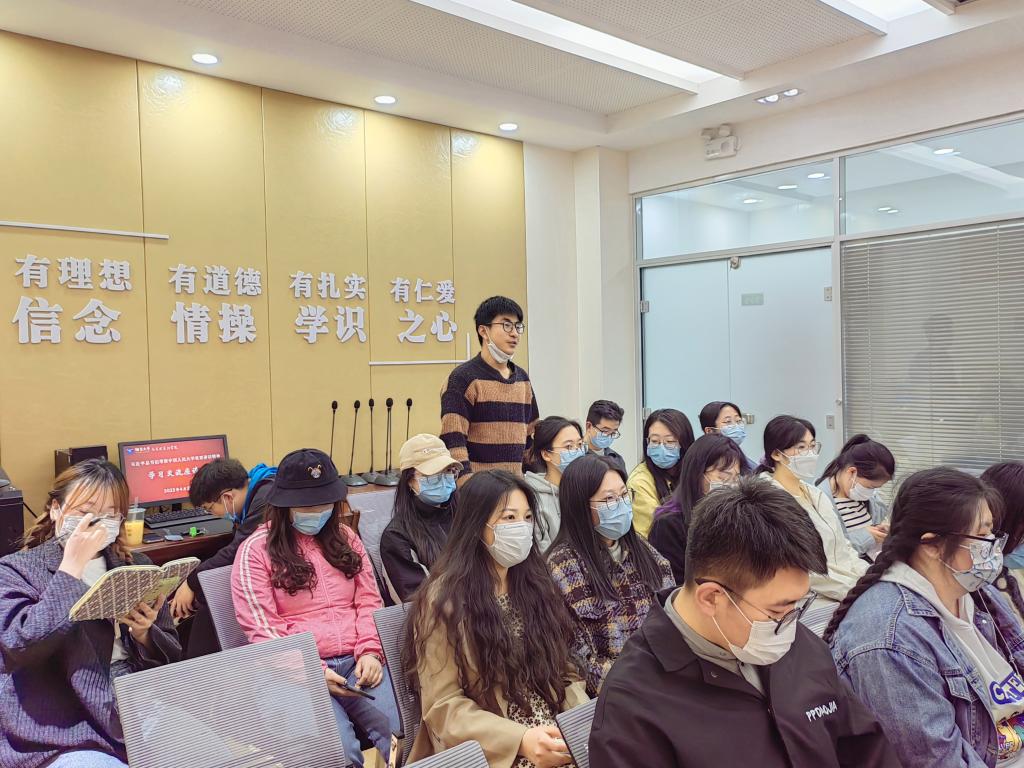 通过集体学习交流习近平总书记考察中国人民大学重要讲话精神,同学们倍感鼓舞,深受激励,认为本次座谈会是一堂生动的思政课。纷纷表示要牢记习近平总书记对新时代青年的殷殷嘱托,立志民族复兴,不负韶华,不负时代,不负人民,在青春的赛道上,争取跑出当代青年的最好成绩。