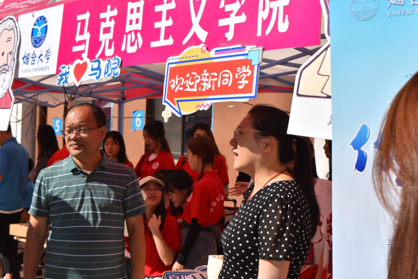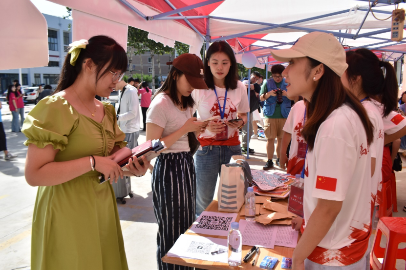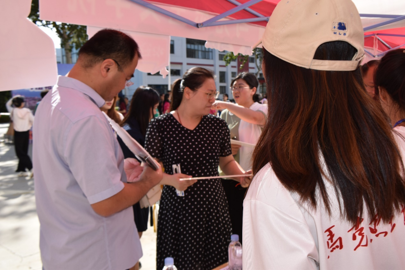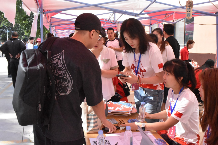迎新现场,迎新志愿者耐心地为新生答疑解惑,有条不紊地帮助新生办理相关手续。公司党政领导、研究生秘书、辅导员在迎新现场,与新生亲切交流,询问报到情况。