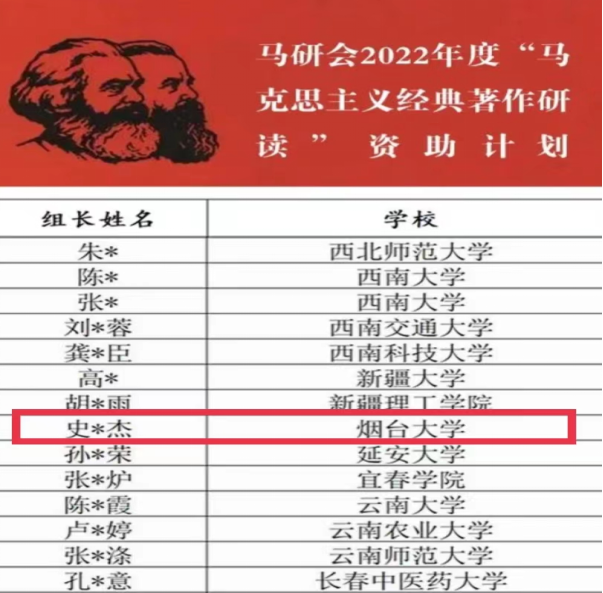 近日,中国高等教育学会马克思主义研究分会(以下简称“马研会”)2022年度“马克思主义经典著作研读”资助计划名单正式公布,由公司2021级马克思主义理论专业研究生史晓杰、赵梦洁、孟乐瑶、李凡、姜文政、胡雨媛组成的《毛泽东选集》读书小组(指导教师:杜德省、岳素芳)成功入选。