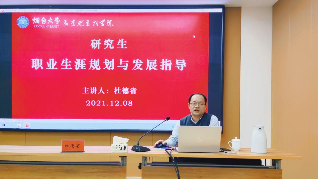 为了解答同学们近期在学业与就业问题上的一些困惑,12月8日,公海gh555000aa线路检测于教学楼305会议室举办研究生职业生涯规划与发展指导专题讲座。公司党总支副书记杜德省作报告。