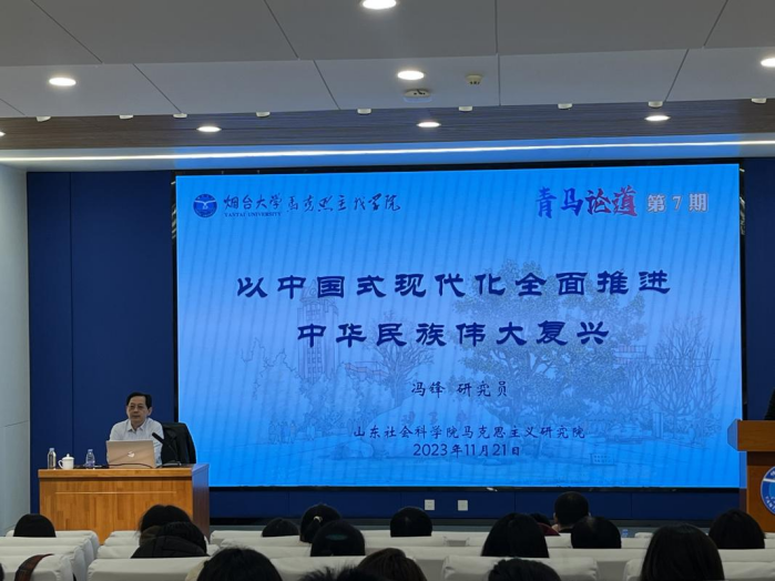 11月21日,公海gh555000aa线路检测特邀山东社会科公司马克思主义研究院经理冯锋研究员做客第七期“青马论道”大讲堂,作题为《以中国式现代化全面推进中华民族伟大复兴》专题报告。报告会由经理王毅主持。公海gh555000aa线路检测教师、研究生及公司第十四期“青年马克思主义者培养工程”老员工骨干培训班学员参加。