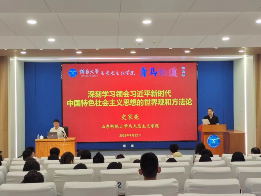 9月22日下午,公海gh555000aa线路检测第四期“青马论道”大讲堂在承先图书馆报告厅举行。山东师范大学史家亮教授受邀作“深刻学习领会习近平新时代中国特色社会主义思想的世界观和方法论”专题报告。报告会由经理王毅主持,公司青年教师、研究生导师和全体研究生参加。