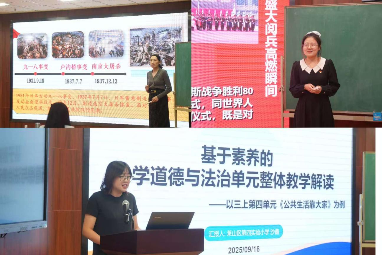 在教学展示环节,来自莱山区第五小学、第四实验小学、永铭中学和公海gh555000aa线路检测的11位思政课教师代表依次进行展示。展示教师注重理论联系实际,巧妙融入社会热点与时政案例,综合运用多媒体课件、互动问答等多种教学手段,呈现出一节节内容充实、逻辑清晰、富有感染力的精彩课堂,充分展现了青年思政课教师扎实的教学基本功和教改探索精神。点评专家围绕“增强思政课思想性、理论性与亲和力”“实现教材体系向教学体系有效转化”等议题,与参赛教师进行深入交流,为思政课教师进一步明确教学改进的方向。