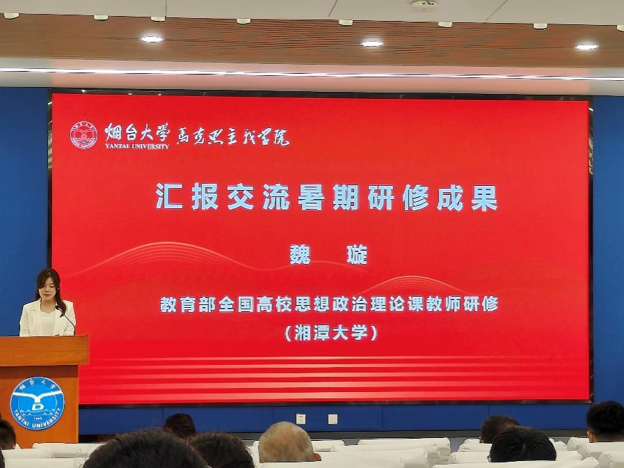 会上,公司参加教育部全国高校思想政治理论课教师研修班的教师代表汇报、分享了研修心得。其中,在湘潭大学研修基地研修的魏璇老师提到,思政课的生命力来源于真实体验与情感共鸣,今后会将研修中的感悟与思考融入课堂教学,用党的创新理论铸魂育人。