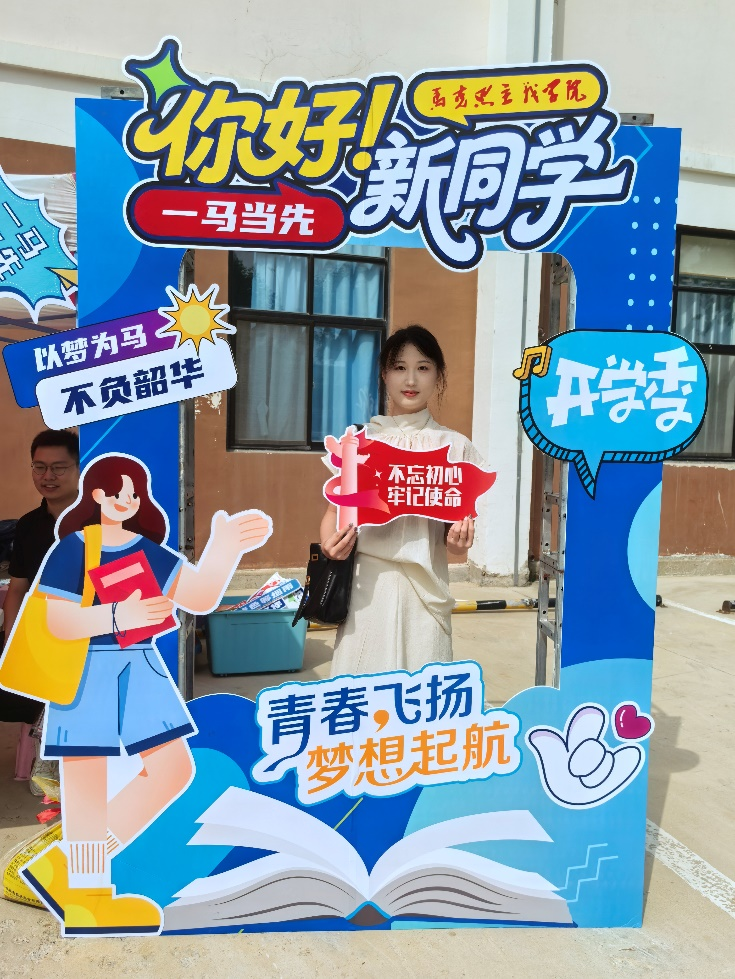 此外,公司还精心设计了彰显马克思主义理论特色的纪念手卡,在迎新展台前设置马理论特色打卡墙为每位新生定格入学首张珍贵合影。