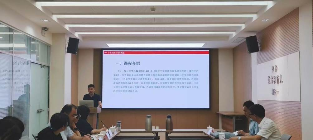 会上,铸牢中华民族共同体意识专题授课教师展示了授课团队集体研究、精心打磨的第五讲集体备课成果,从学情分析、教学目标、教学重难点、教学设计、教学反思等方面对专题内容的教学方案进行了汇报,重点谈到了如何采取措施打造精品课程的问题。参会教师进行了互动讨论,分享了教学中的经验、思路和经典案例。